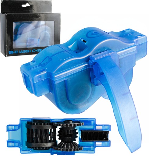 Przyrząd przeznaczony do czyszczenia i smarowania łańcucha rowerowego. Umożliwia czyszczenie łańcucha bez konieczności zdejmowania go z roweru i bez brudzenia rąk.