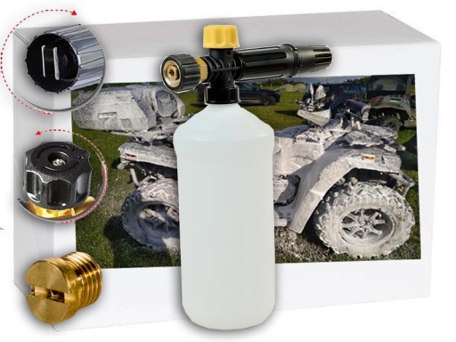 Pianownica idealnie współpracuje ze wszelkiego rodzaju środkami czyszczącymi takimi jak: aktywna piana, szampon z woskiem i bez wosku, hydrowosk i wiele innych. Pojemność butelki wynosi 1L. Wytrzymały korpus gwarantuje długotrwałe i bezawaryjne użytkowanie. Półprzeźroczysty zbiornik na chemię daje możliwość wglądu i tym samym kontrolujemy zużycie chemii. Pianownica posiada regulacje kąta strumienia wody z pianą oraz ilość podawania chemii.