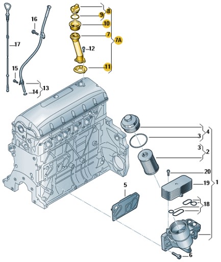 Wlew oleju kominek wraz z korkiem VW T5 2.5 TDI