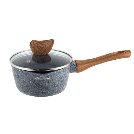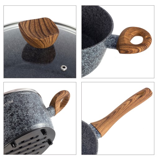 Komplet garnków Kamille wykonany z odlewu aluminium z powłoką granitową - wygodny i praktyczny do stosowania. Garnki są bardzo wytrzymałe, odporne na obciążenia mechaniczne, co znacznie zwiększa ich trwałość.