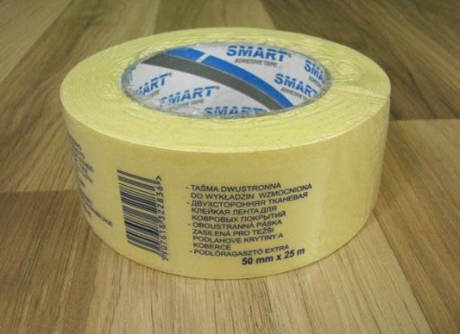 Samoprzylepna taśma do montowania wykładzin podłogowych, sztucznej trawy, dywanów, nakładek i chodników schodowych oraz mocowania na stałe różnych materiałów.