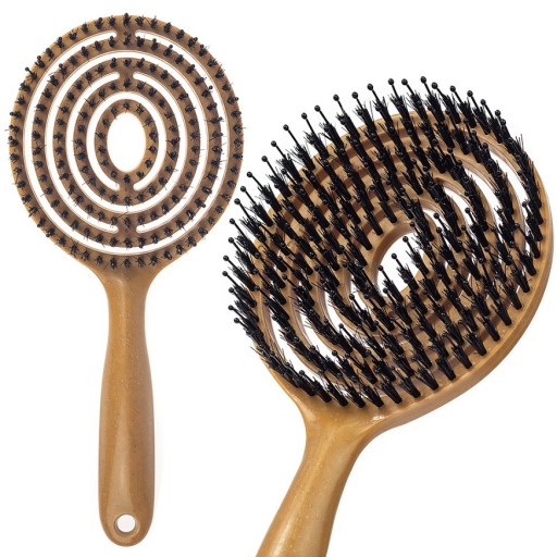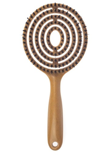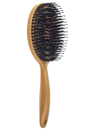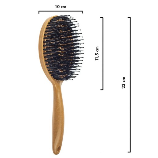 Wysokiej jakości szczotka wykonana z biodegradowalego tworzywa oraz sprasowanej słomy pszenicznej, z mieszanki naturalnego włosia dzika i włosia nylonowego wzmacnianego igiełkami nylonowymi o zaokrąglonych końcach. Idealna do rozczesywania każdego rodzaju włosów, zarówno na sucho jak i na mokro. Gęste włosie z dzika zapewnia włosom wyjątkową gładkość i połysk po czesaniu.