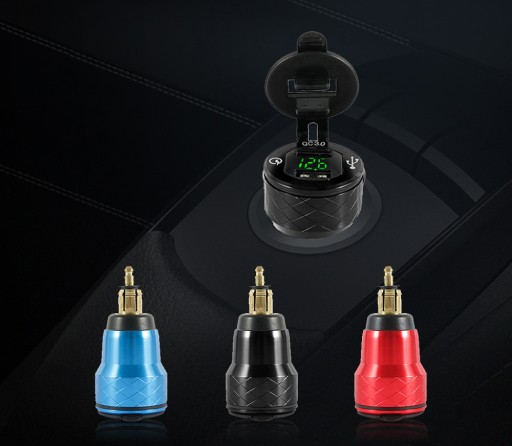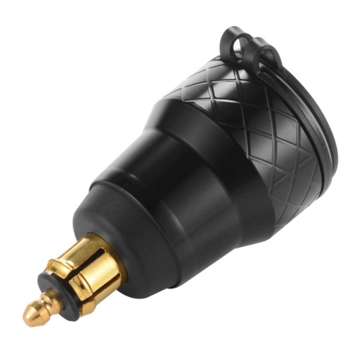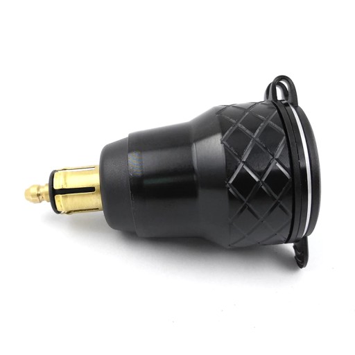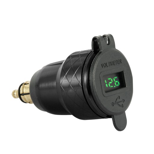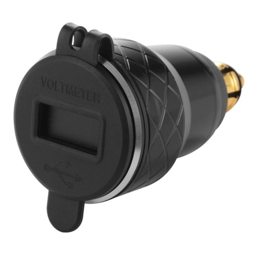 Przejściówka gniazda zapalniczki z cyfrowym woltomierzem wyświetlającym aktualny poziom napięcia akumulatora i dwoma portami USB szybkiego ładowania o napięciu QC3.0. Zestaw umożliwia jednoczesne korzystanie z obu gniazd, czyli ładowanie np. nawigacji i telefonu w tym samym czasie. Gniazda posiadają gumową osłonę chroniącą przed wodą i kurzem. Obudowa wykonana jest z metalu dzięki czemu produkt jest wytrzymały i solidny. Najczęściej stosowane w BMW i samochodach ciężarowych.