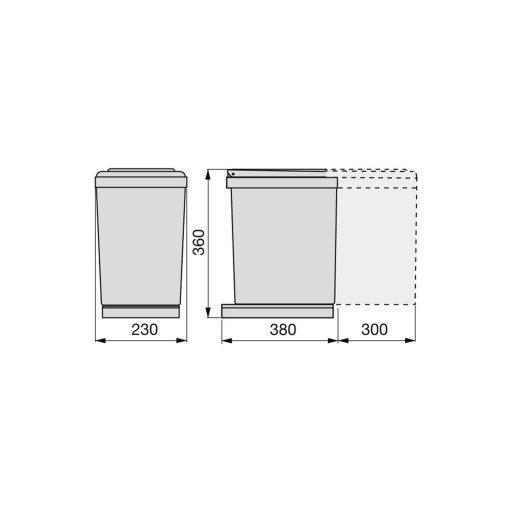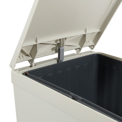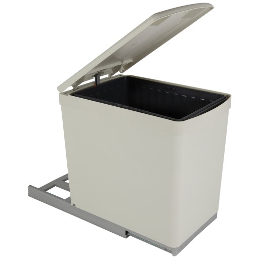 Pojemnik na śmieci przeznaczony do montażu wewnątrz mebli kuchennych. Zdejmowana podstawa jest przymocowana do dolnej części modułu, umożliwiając delikatne wyciąganie dzięki wbudowanym prowadnicom kulkowym. Kosz jest łatwo dostępny dzięki mechanizmowi automatycznego otwierania pokrywy, który aktywuje się przy wyjmowaniu pojemnika. Wysokiej jakości produkt hiszpańskiego producenta marki EMUCA.
