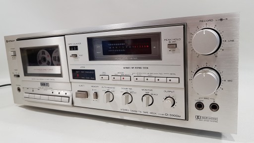 Zapraszam do zakupu magnetofonu kasetowego marki HITACHI model D-3300M. Topowy model, 3 głowice, 2 wałki, napęd bezpośredni, najlepsza elektronika no i ATRS czyli automatyczna kalibracja i możliwość zapisu ustawień. W japońskich prospektach można wyczytać o tytanie i szkle w głowicy, która jest bezszczelinowa. Ogólnie posiada wszystko co można oczekiwać od porządnego magnetofonu. Sprzęt całkowicie sprawny, bardzo ładnie kalibruje taśmy, nagrywa i odtwarza, przewija. Sprzęt po kompletnym przeglądzie - zostały wymienione paski jak i został oczyszczony tor przesuwu taśmy jak i cała komora kasety, pełen serwis przełączników i potencjometrów i samego mechanizmu. Ładny stan wizualny. Super extra bezpiecznie spakowana wysyłka w cenie. Polecam.