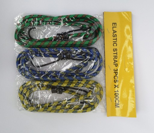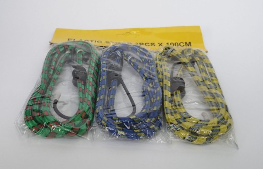Uniwersalny komplet trzech mocnych elastycznych linek o długości 100 cm każda. Stosowane do mocowania bagażu na bagażnikach samochodowych, rowerowych, motocyklowych itp.