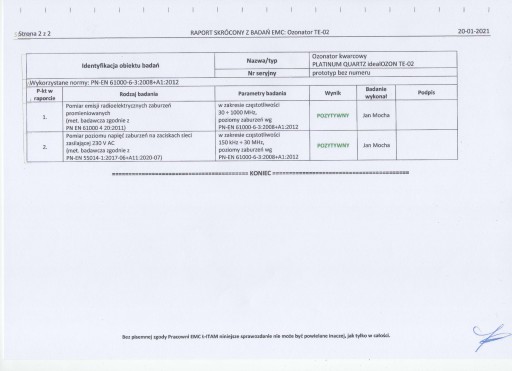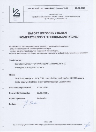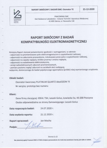 - produkt przebadany w Instytucie Techniki i Aparatury Medycznej ITAM Zabrze