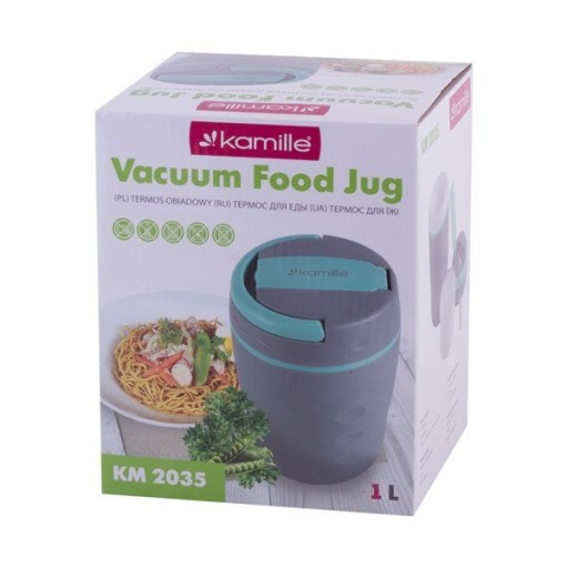 Pojemnik wykonany z wysokiej jakości tworzywa sztucznego. Przeznaczony jest zarówno do produktów gorących jak i zimnych. Szeroki otwór ułatwia napełnianie pojemnika jedzeniem.Posiada wygodny uchwyt do przenoszenia.W zestawie znajduje się składana łyżeczka.