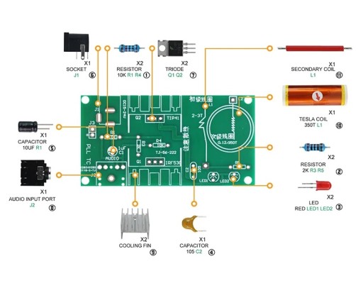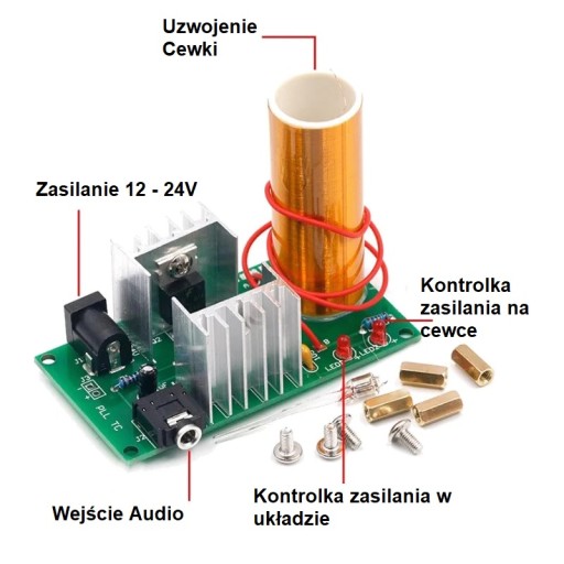 Катушка TESLA Генератор Тесла 15 Вт 12-24 В Набор для самостоятельного изготовления