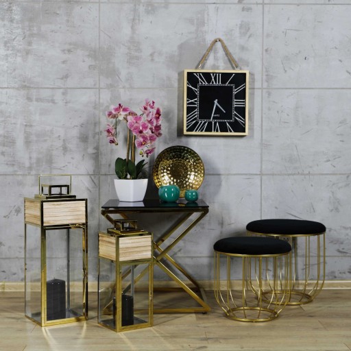 Latarnie zostały wykonane z wysokiej jakości stali chromowanej w kolorze złotym, a szybki mają grubość 3 mm.