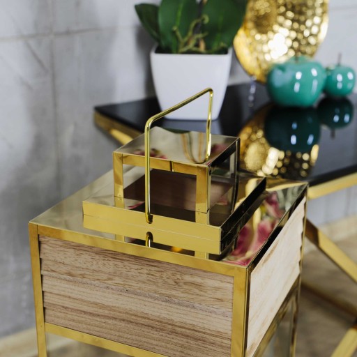 Duża złota latarnia lampion chrom+drewno 2w1 68cm