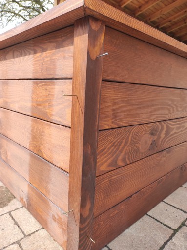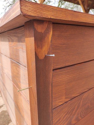 Warzywniak jest wykonany z desek sosnowych heblowanych czterostronnie. Jest impregnowana a później lakierowana lakierobejcą .