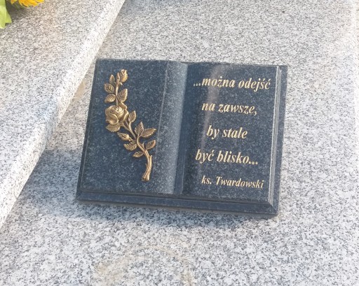 Książka jako dodatkowa ozdoba na pomniku, zawierająca motto, sentencję, cytat...
