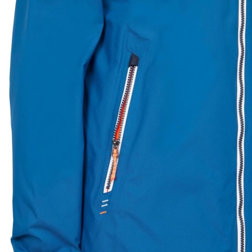 Hydrofobowa, wytrzymała kurtka o doskonałej relacji jakość/cena, idealna na deszcz jak i do okazjonalnego uprawiania żeglarstwa w deszczową i wietrzną pogodę, posiada uszczelnione wszystkie szwy oraz wodoodporną powłokę 2000 mm w skali SCHMERBERA (test natryskowy pod 100 litrami wody/m²/h przez 3 godziny - norma ISO 811). Wysoki kołnierz i kaptur z daszkiem i regulacją obwodu głowy i głębokości, zapewniają ochronę i komfort podczas złej pogody. Waga kurtki około 550 g w rozmiarze XL.