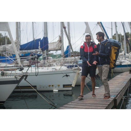 Kurtka żeglarska TRIBORD jest wodoodporna i oddychająca, przeznaczona dla mężczyzn do ochrony przed deszczem i wiatrem na co dzień oraz uprawiających żeglarstwo lub inną aktywność fizyczną.
