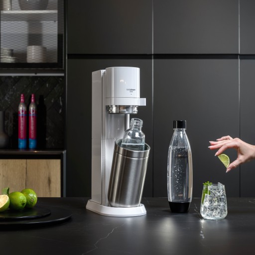 Saturator do wody SodaStream Duo w kolorze białego matu, idealnie pasuje do każdego wnętrza, zarówno Twojej kuchni jak i pomieszczenia biurowego. Bąbelkowa woda z saturatora jest doskonałą alternatywą dla napojów gazowanych w plastikowych butelkach jednorazowych ze sklepu, które dodatkowo zabierają Ci miejsce.