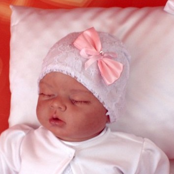 CZAPECZKA KORONKOWA podszyta bawełną DO CHRZTU