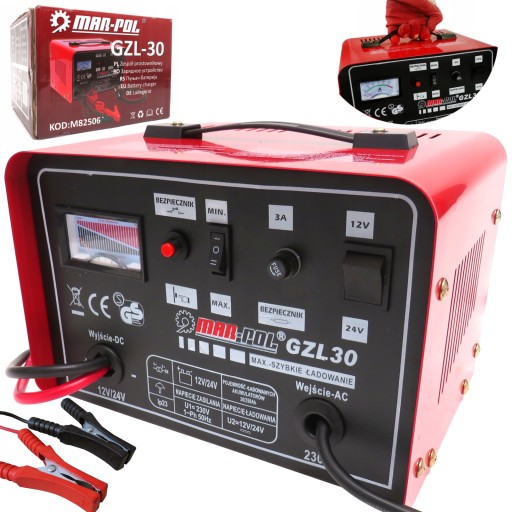 Prostownik GZL-30 z funkcją szybkiego ładowania to profesjonalne urządzenie do ładowania akumulatorów ołowiowo-kwasowych o napięciu 12 V, 24 V i pojemności akumulatorów od 30 Ah do 250 Ah.