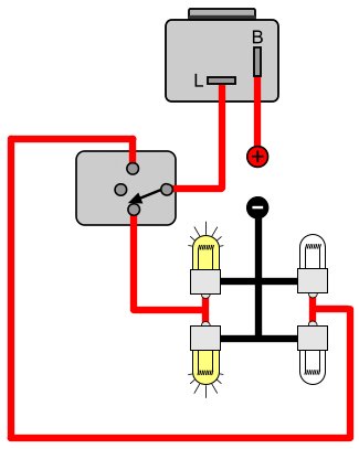 Przekaźnik powoduje poprawną pracę kierunkowskazów po zastąpieniu tradycyjnych żarówek diodami LED. Nie ma efektu podwójnej częstotliwości migania.