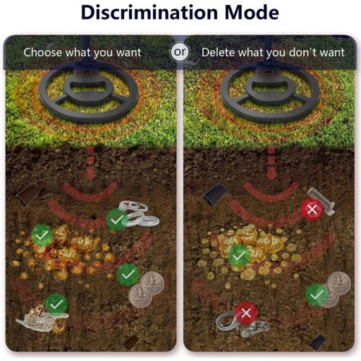 - DISC: Funkcja ta pozwala wykrywaczowi na rozróżnienie rodzajów metali, a dokładnie na odróżnienie rodzajów metali żelaznych od metali nieżelaznych (złoto, srebro, miedź, aluminium, cynk, ołów, platyna). Pozwala to na filtrowanie małych przedmiotów, takich jak kapsle, łuski lub odłamki