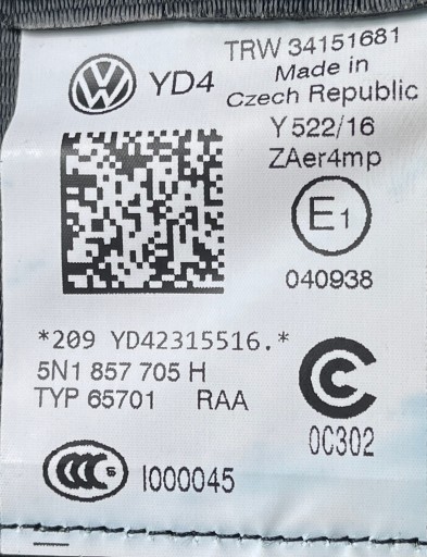 # VW TIGUAN 5N 12-16 РЕМЕНЬ БЕЗОПАСНОСТИ ПЕРЕДНИЙ ЛЕВ