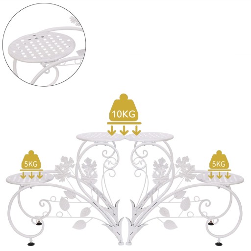 Piękne donice potrzebują pięknego stojaka. Ten produkt ma unikalny wygląd, który zmienia wygląd Twoich obszarów. Jest zbudowany z zagęszczonego żelaza, dzięki czemu jest solidny i mocny. Z czterema poziomami, aby wyeksponować kwiaty i donice w biurze lub na zewnątrz ogrodu. Co więcej, możesz ich używać osobno lub składać razem.