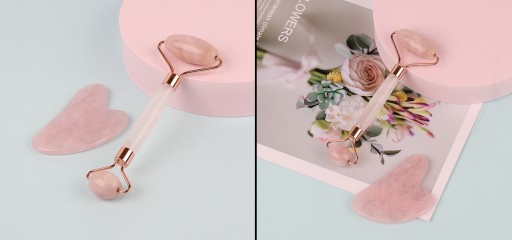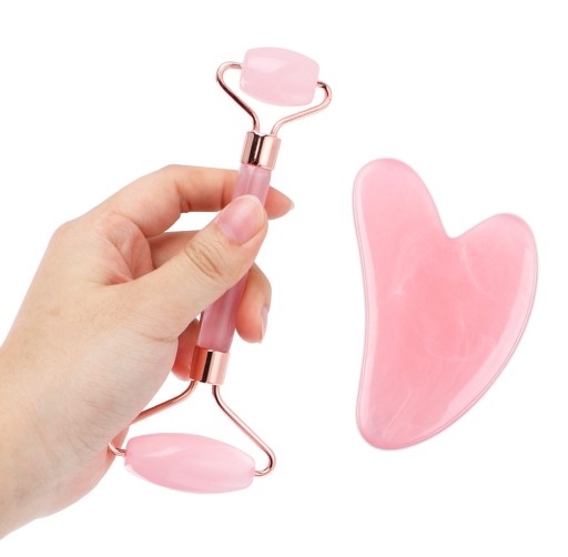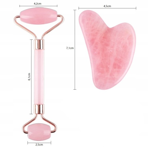 MASAŻER ROLLER DO TWARZY + PŁYTKA GUA SHA MASAŻER RÓŻOWY DO TWARZY