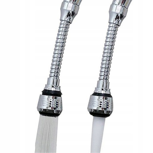 Przedłużka do kranu posiada wężyk o łącznej długości prawie 15 cm, dzięki czemu stanowi idealne przedłużenie już istniejącego dopływu wody. Pozwala to na poruszanie wężem w różne strony, co jest zaleta podczas mycia trudno dostępnych miejsc lub naczyń o większych rozmiarach. Dzięki braku chlapania wody przedłużka zmniejsza jej zużycie ,a co za tym idzie zaoszczędza pieniądze na rachunkach!