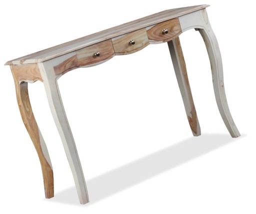 Oddanie niesamowitego stylu z dawnych lat nigdy nie jest łatwym zadaniem. Należy uważać, aby przypadkiem nie przesadzić z elementami charakterystycznymi dla danej epoki, bo takiemu meblowi bliżej będzie do karykatury niż klimatu starego wyrobu. Na szczęście konsola Lorem 3X idealnie i gracją równoważy wszystkie te cechy. Blat jest szeroki i daje dużo miejsca na wszystkie przedmioty, które trzyma się na tego typu meblach. Dzięki temu możesz mieć wszystko co potrzebne zawsze pod ręką. Brzegi zostały zręcznie ścięte powodując łagodne zakończenie blatu. Prezentuje się to świetnie szczególnie z większej odległości. Boki stolika zostały wyposażone w listwy o delikatnie falowanych brzegach. Na brzegach występują głębokie frezy, które pozbywają się tak niechcianych ostrych krawędzi. Kunsztowne wykonanie pozwala na płynne przejście od blatu do nóg. Z odległości nie widać łączenia, a całość sprawia wrażenie bardzo jednolitej formy. Nogi zostały stworzone w bardzo charakterystycznym dla tamtej epoki stylu. Są one lekko wykrzywione i przede wszystkim falowane. Dzięki temu podkreślają lekkość i styl całości, a przy tym są niezwykle stabilne.