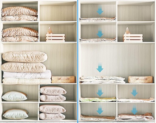 ✅ łatwe w użyciu, wystarczy włożyć do nich tekstylia, zasunąć i odciągnąć odkurzaczem nadmiar powietrza, by zmniejszyć objętość przechowywanych rzeczy;
