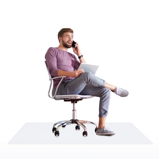- Wycisza nieprzyjemne dźwięki charakterystyczne dla przesuwania się kółek foteli po twardej podłodze