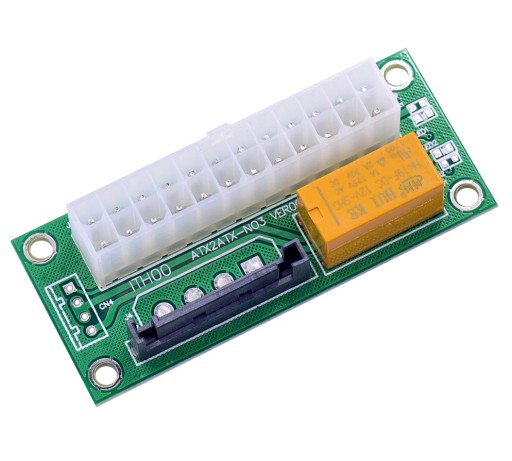 Podłącz 4-pinowy łącznik moleks z głównego zasilacza i 24-pinowe złącze ATX dla dodatkowego zasilacza do jednostki ADD2PSU.