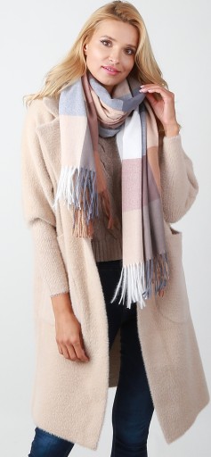- Duży MODNY Miękki szal z FRĘDZLAMI o gładkim splocie.