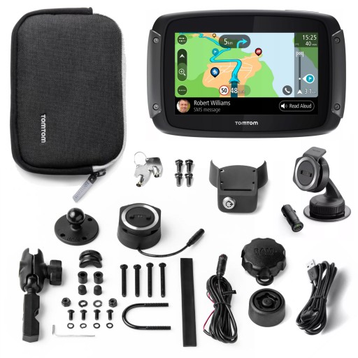 Wytrzymałe urządzenie TomTom Rider o metalowych krawędziach ma odporną na warunki pogodowe i upadki konstrukcję o stopniu ochrony IPX7. Jest wyposażone w szybki czterordzeniowy procesor i uruchamia się nawet pięć razy szybciej. Urządzenie nawigacyjne dla motocykli jest wyposażone w uniwersalny uchwyt RAM, dzięki czemu możesz wyruszyć w drogę szybciej niż kiedykolwiek wcześniej.