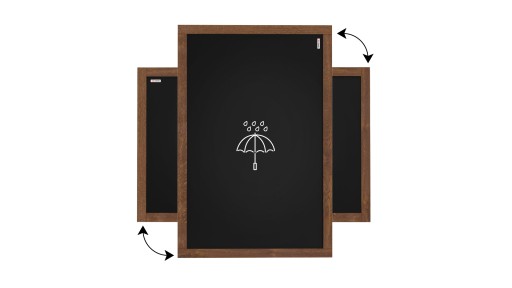 Sercem tablicy jest czarna płyta ABS. Wykonana jest z tworzywa sztucznego, dzięki czemu jest w pełni odporna na warunki atmosferyczne oraz możliwe uszkodzenia. Nie musisz obawiać się opadów deszczu – Twoja tablica może funkcjonować przez cały czas! Po płycie ABS można pisać za pomocą kredy oraz markerów kredowych.