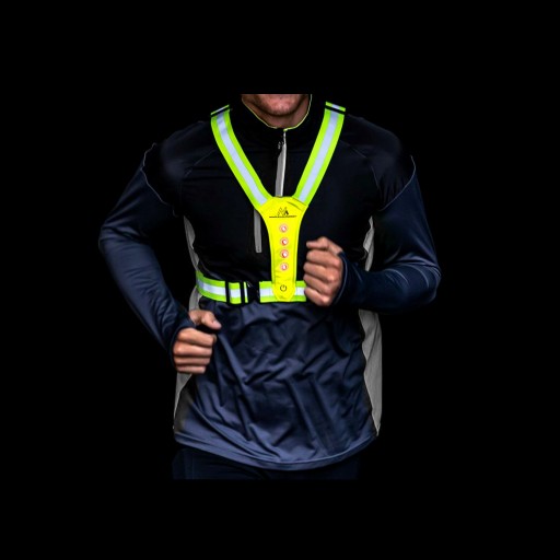Szelki wyposażone są w światła LED oraz taśmy odblaskowe, które zapewniają widoczność z odległości niemal 200m, dodając Ci bezpieczeństwa.