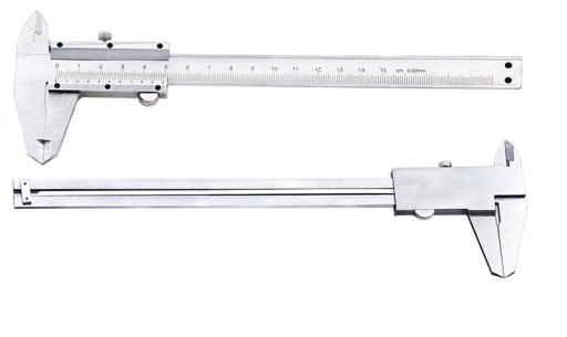 Tradycyjna analogowa suwmiarka posiada zakres pomiaru do 150 mm co się przekłada na 6". Dokładność do 0,02 mm.