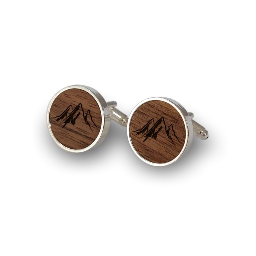 Eleganckie spinki do mankietów z Twoim grawerem na orzechu amerykańskim, wykonane z metalu jubilerskiego prosto od producenta.