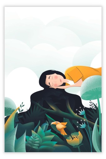 Pobudzający wyobraźnię obraz, który sprawi, że pokój Twojego dziecka stanie się wyjątkową przestrzenią do dorastania. Piękna dziewczynka, usypiająca w ogrodzie swoich marzeń.