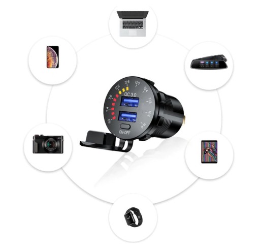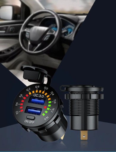 Podwójna ładowarka USB Quick Charge QC3.0 12V-24V ze wskaźnikiem napięcia i wyłącznikiem