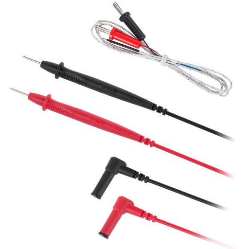 - Akcesoria: Baterie, przewody pomiarowe, sonda pomiaru temperatury