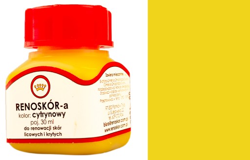 Farba do odnawiania skór licowych oraz krytych RENOSKÓR. Farba do stosowania na wszystkich przedmiotach wykonanych ze skóry, np. skórzane obuwie, skórzane kurtki, skórzane torby, skórzane sofy, skórzane portfele, skórzane rękawice.