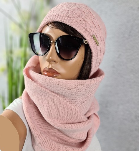 Uniwersalny fason sprawdzi się doskonale do każdej jesiennej jak i mroźnej zimowej stylizacji. Czapka jest delikatnie opadająca, ładnie się układa. Duży komin zakładany na 2 razy możesz nosić razem lub założyć sam.