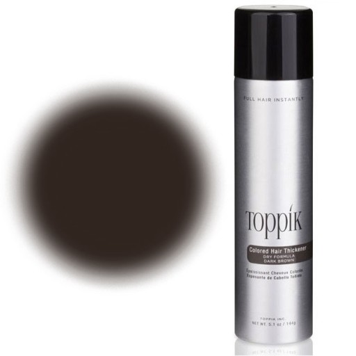 Toppik Hair Thickener to mieszanka specjalnych polimerów oraz keratynowych mikrowłókienek zawartych w aerozolu. Po spryskaniu nią włosów i przeczesaniu ich, natychmiast uzyskuje się niesamowity efekt gęstych włosów. Jakiekolwiek przerzedzenia przestają być widoczne, a włosy stają się grube i gęste.