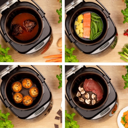 16 PROGRAMÓW: Sumarycznie szybkowar pozwala na ustawienie aż 16 różnych programów. Program MIĘSO to funkcja dedykowana smażeniu mięs. Program RYBY pozwala łatwo usmażyć każdy rodzaj ryby. Funkcja RYŻ służy do gotowania gotowanego lub suchego ryżu, a program CHLEB pozwoli Ci upiec pyszny domowy chleb lub inne pieczywo. Szybkowar posiada także program MAKARON, dzięki któremu można ugotować w nim każdy rodzaj makaronu i wszelkie dania z makaronem. Program WARZYWA dedykowany jest gotowaniu warzyw, zaś program POWOLY KUCHARZ to opcja dla dań, które wymagają długiego i niespiesznego gotowania. Szybkowar pozwala także na przyrządzanie domowego jogurtu, a to możliwe dzięki programowi JOGURT. Wystarczy do tego jedynie mleko i żywe kultury bakterii jogurtowych, a resztą zajmie się urządzenie. Pozostałe programy, które można wykorzystać to: program DESER do robienia deserów, program PIECZENIE do pieczenia ciast, ale i zapiekania, i pieczenia wszelkich innych potraw, program CIASTO do robienia ciasta- np. na pizzę czy bułki, program STEAM- GOTOWANIE NA PARZE do gotowania na parze, czyli dietetycznie i małokalorycznie, a także program ZUPA do przyrządzania zup i kremów z warzyw.