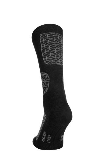 Ściegi skarpet zostały ręcznie wykończone w celu uzyskania bezszwowego efektu, który eliminuje zbędne punkty nacisku na stopy. Z kolei dodatkowe wzmocnienie okolicy stawu skokowego chroni przed otarciami w trakcie jazdy.