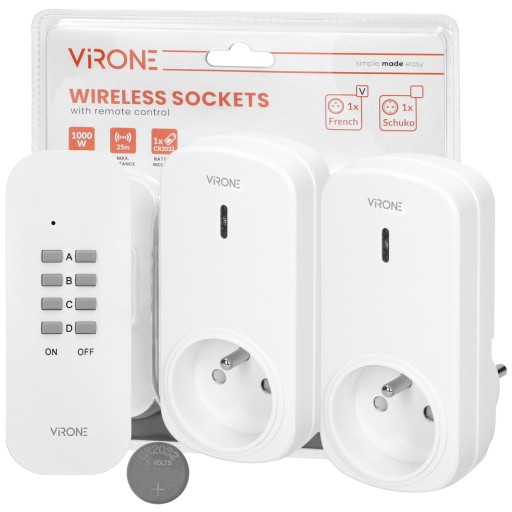 Zestaw dwóch gniazd bezprzewodowych przeznaczonych do zdalnego włączania i wyłączania urządzeń elektrycznych za pomocą pilota znajdzie szerokie zastosowanie wewnątrz pomieszczeń do obsługi m. in.