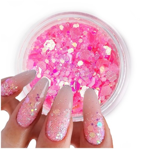 Na paznokciach daje efekt iskrzących drobinek mieniących się wieloma kolorami!