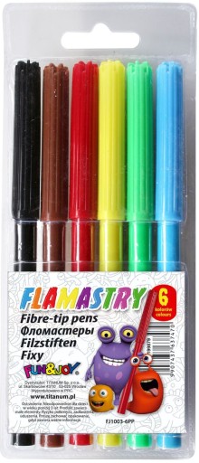 Nadają się do pisania, rysowania i kolorowania. Specjalny tusz sprawia, że flamastry można usunąć zarówno z ciała, jak i z ubrań oraz z innych powierzchni, za pomocą mydła i ciepłej wody. Wentylowana skuwka. Bardzo lekkie i wygodne.