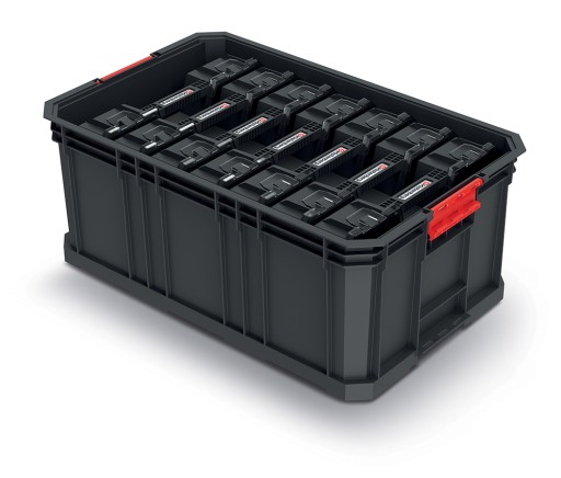 Pojemnik warsztatowy o podwyższonej nośności i głębokości. Produkt zawiera 7 niezależnych organizerów.
